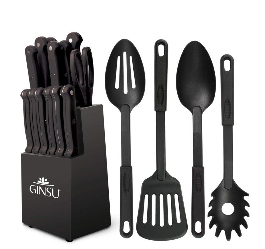 Ginsu Kiso 18-Piece Black Knife Set with Black Block – Dishwasher Safe and Always Sharp
